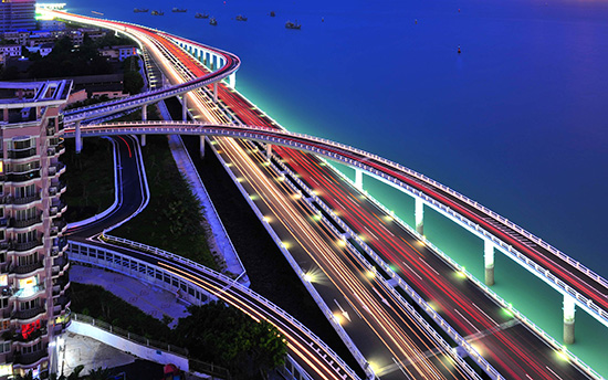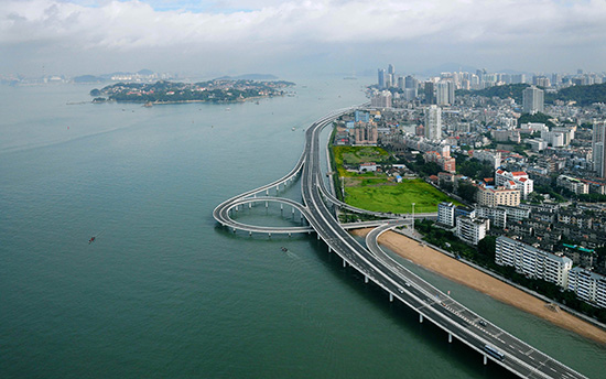 演武大橋位于廈門(mén)環(huán)島路海軍碼頭-演武路-白城段,包括主線橋和互通式立交橋(連接演武路和成功大道),其中主線橋長(zhǎng)2800米,寬26米,雙向6車道,設(shè)計(jì)行車速度 60km/h,工程總投資5.6億元。
